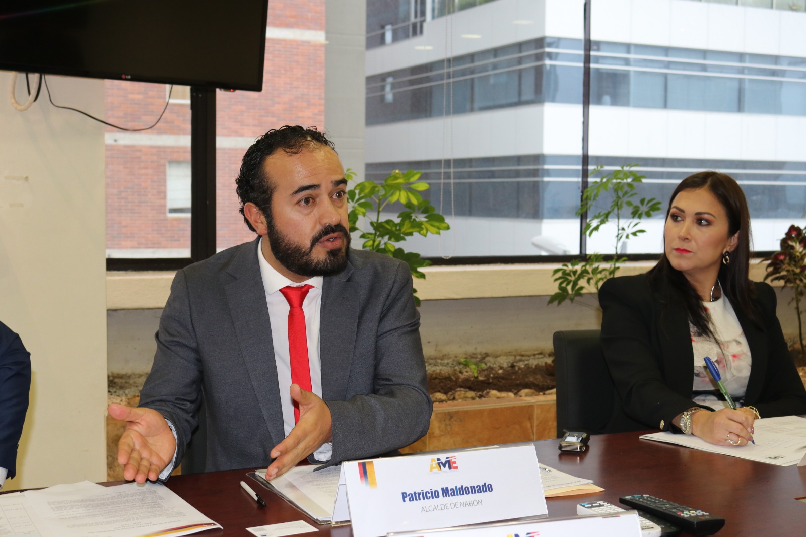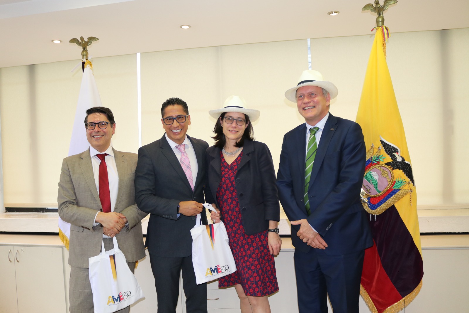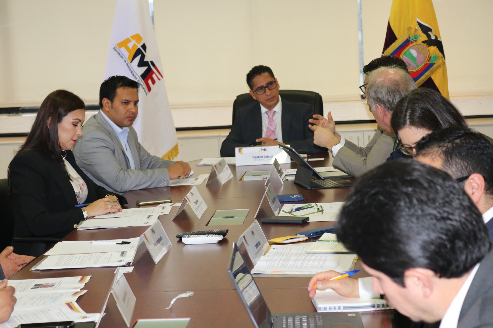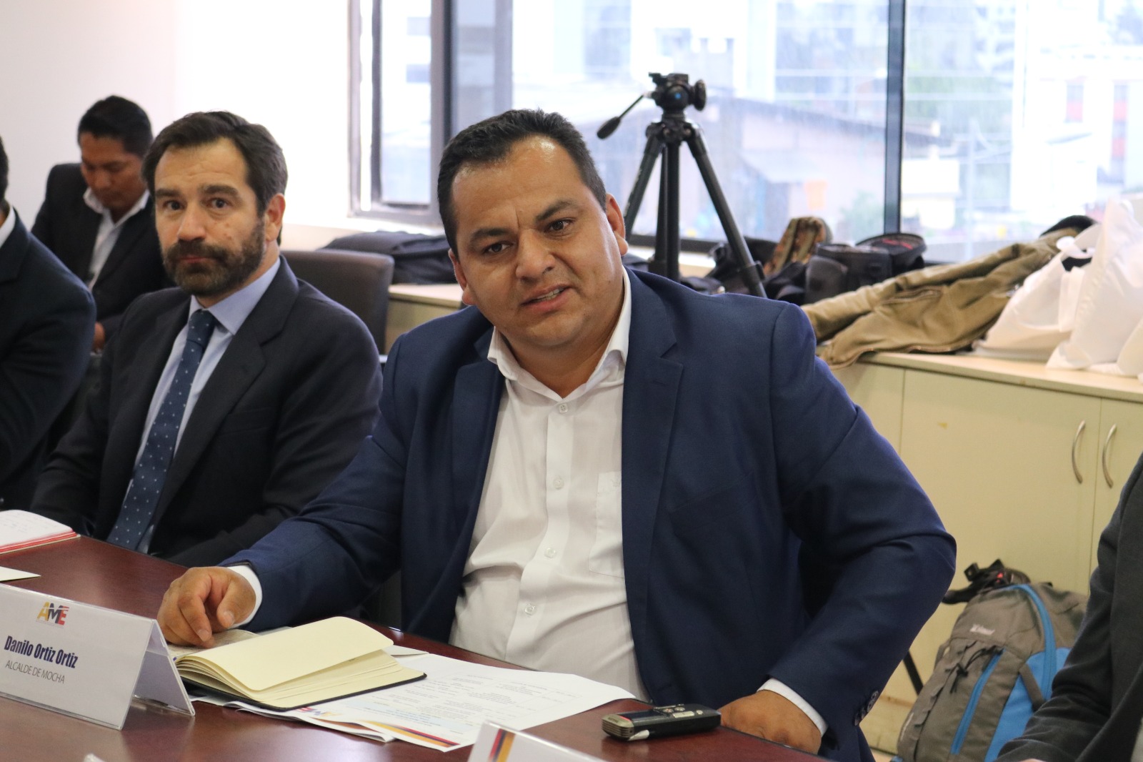La Asociación de Municipalidades Ecuatorianas (AME), encabezada por su presidente, Franklin Galarza Guzmán, conjuntamente con los alcaldes de Mocha y Nabón, Danilo Ortiz y Patricio Maldonado respectivamente; mantuvieron una reunión con Ricardo Mouriñho Félix, vicepresidente del Banco Europeo de Inversiones (BEI), Charles Michel Geurts, embajador de la Unión Europea en el Ecuador y Kristin Lang, jefa de América Latina y Caribe del BEI, con el objetivo de entrega de créditos para proyectos enfocados en obra pública.