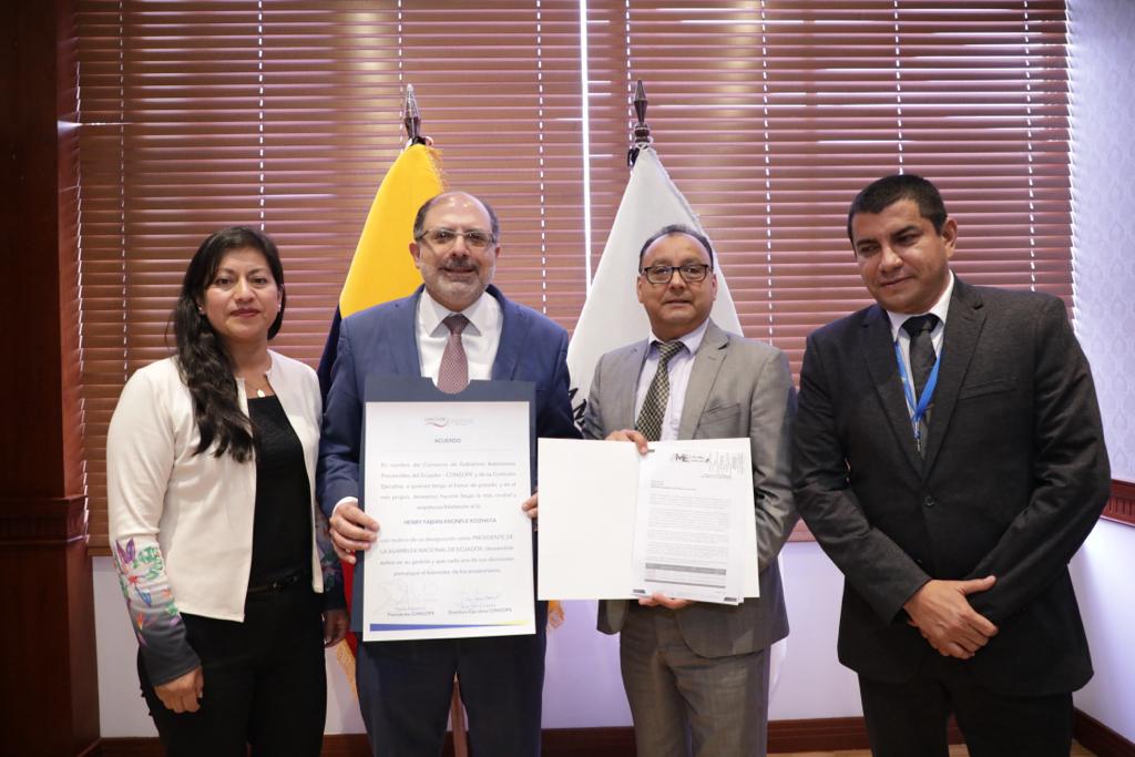 El Director Ejecutivo de la Asociación de Municipalidades Ecuatorianas (AME), Johnny Firmat, en representación de Patricio Maldonado, presidente de AME, el Comité Ejecutivo y de los 221 municipios del Ecuador participó de una reunión de trabajo con Henry Kronfle y varios asambleístas para poner en conocimiento sobre los valores pendientes que el Gobierno Nacional mantiene con los gobiernos locales y que afectan a la implementación de obra pública, generación de servicios básicos y la generación de empleo local.