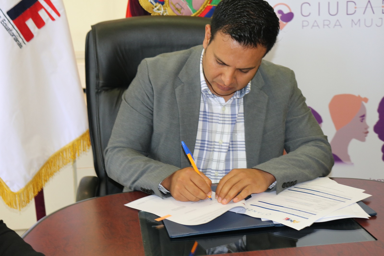 Con la presencia de Álex Rojas, director ejecutivo de la Asociación de Municipalidades Ecuatorianas (AME), este 27 de febrero se suscribió el convenio marco de cooperación interinstitucional con la Fundación Tandem, estableciendo compromisos entre estas dos instituciones para la promoción de la guía de enfoque de género en el ámbito municipal.