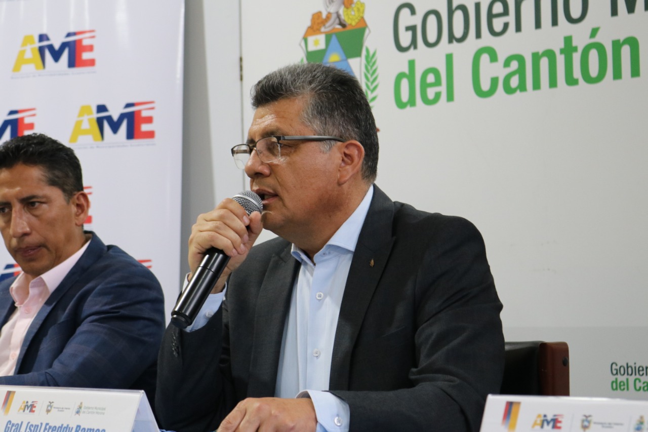 Con el objetivo de combatir la inseguridad, el presidente de la Asociación de Municipalidades Ecuatorianas (AME), Franklin Galarza y el viceministro del Interior, Gral. Freddy Ramos, suscribieron un convenio para implementar acciones interinstitucionales en el ámbito de la seguridad ciudadana y convivencia social pacífica, que permitirá a través de los Gobiernos Autónomos Descentralizados Municipales y la Policía Nacional impulsar la protección interna y orden público en los cantones.