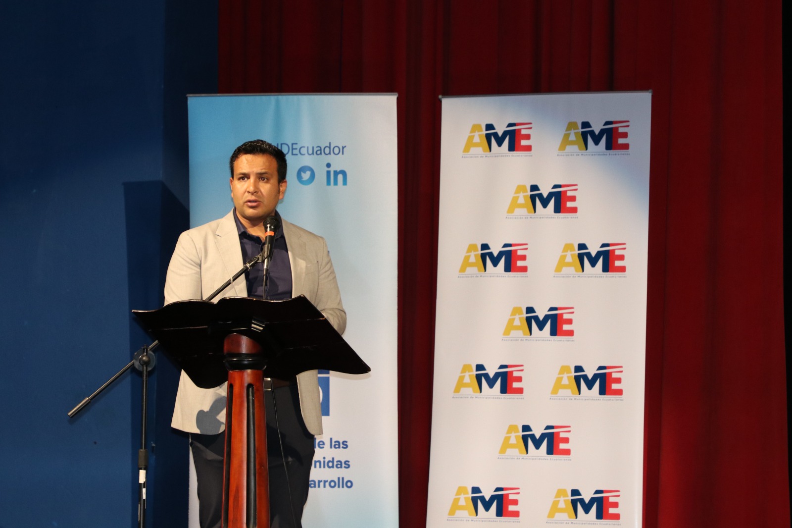 Nury Bermúdez, oficial de Gestión de Riesgos de PNUD, resaltó que el trabajo coordinado con AME ayudará a que las autoridades realicen un correcto proceso de transición, hizo un llamado a que como autoridades electas consideren el compromiso de Ecuador con los Objetivos de Desarrollo Sostenible (ODS) en sus procesos de planificación, implementación, monitoreo y evaluación de resultados de desarrollo, con la finalidad de disminuir la pobreza en el país, proteger los recursos naturales y promover sociedades pacíficas, justas e inclusivas.